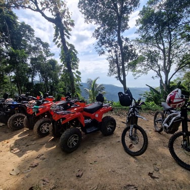 Discover the thrill of our jungle adventures with both electric Sur-Ron dirt bikes and 250cc ATVs. Our Sur-Ron electric bikes are easy to ride, with no gears to shift and the ability to tackle any terrain. Perfect for ages 12 to 99! We also offer powerful 250cc ATVs, and you can even mix both for a unique group experience.